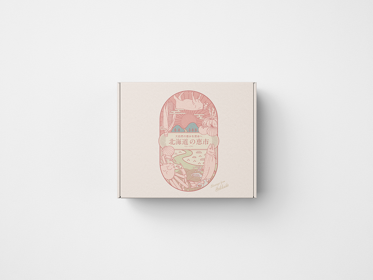 北海道の自然の恵みを全国にお届けする企業を想定した輸送の為のパッケージデザイン。届けられたお客様が思わず撮影したくなるようなお洒落なパッケージを目指した。