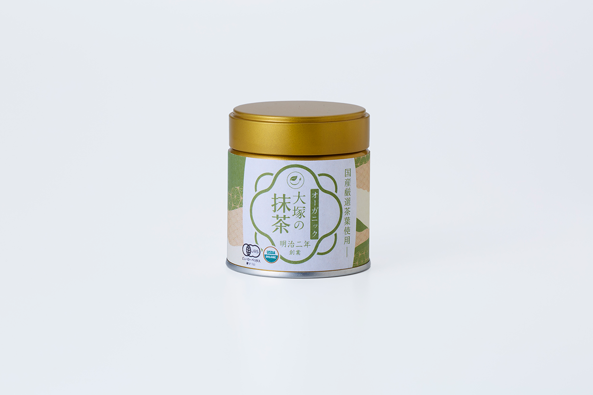 創業明治ニ年の老舗・大塚製茶が製造する抹茶粉末のパッケージ。伝統的なイメージと現代的なモダンさを出せるように商品ロゴを作成させていただいた。
